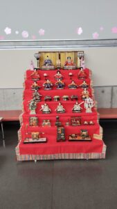 火曜午前の麻雀サークルで利用している【太平・百合が原地区センター】にて公共施設での雛飾りとしては大きいほうですよね